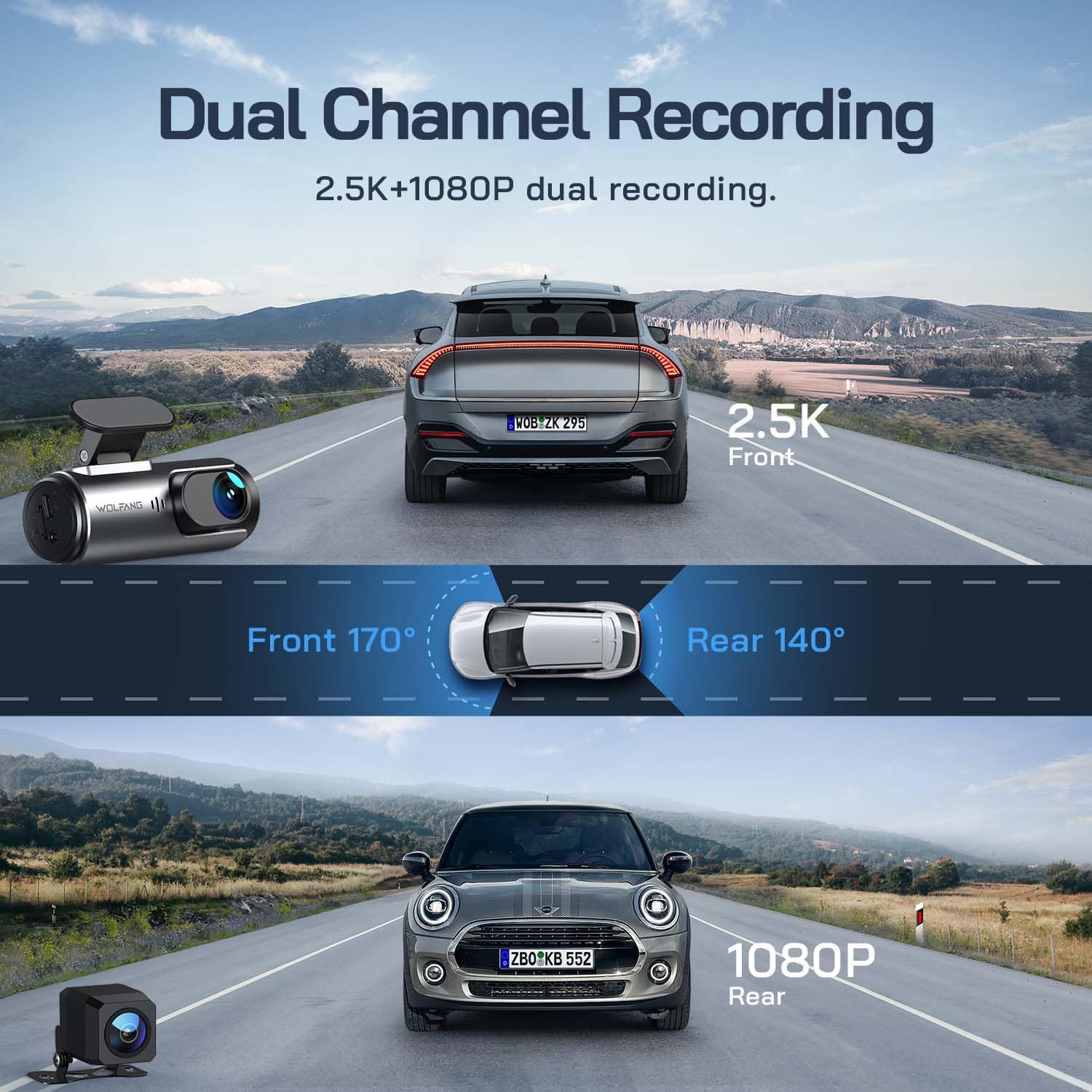 - 【Ultra HD 4K Front & Rear Car Recorder】This dual car recorder captures the road in detail at both4K 2160P/30fps front resolution and 1080P rear resolution. With a 170° wide-angle lens, large F1.8 aperture, and WDR night vision, you can capture clear images even in low-light conditions to ensure every angle is covered and nothing is missed.