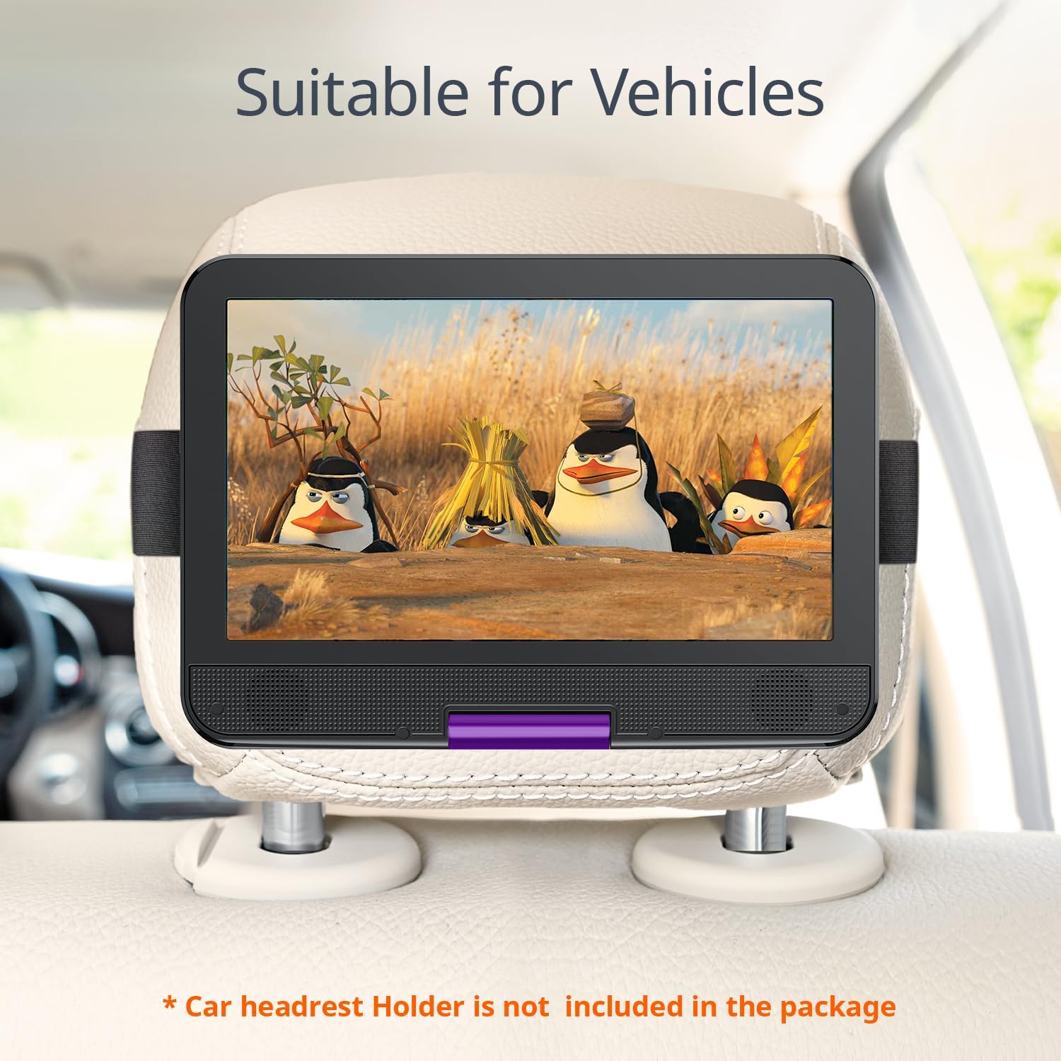 Cocobear 10.5" Portable DVD Player HD Swivel Screen for Car and Kids, Car Charger AC Adaptor, 1080p, Purple