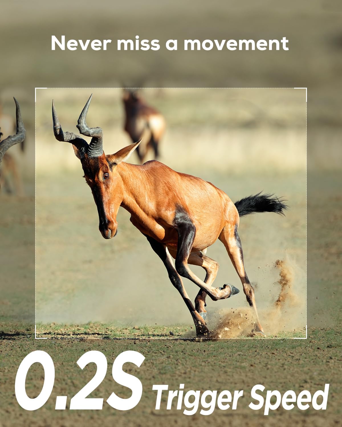 With the advanced image sensor and optical lens, the trail cam takes crisp 36MP photos and 2K HD videos with vivid details both day and night.