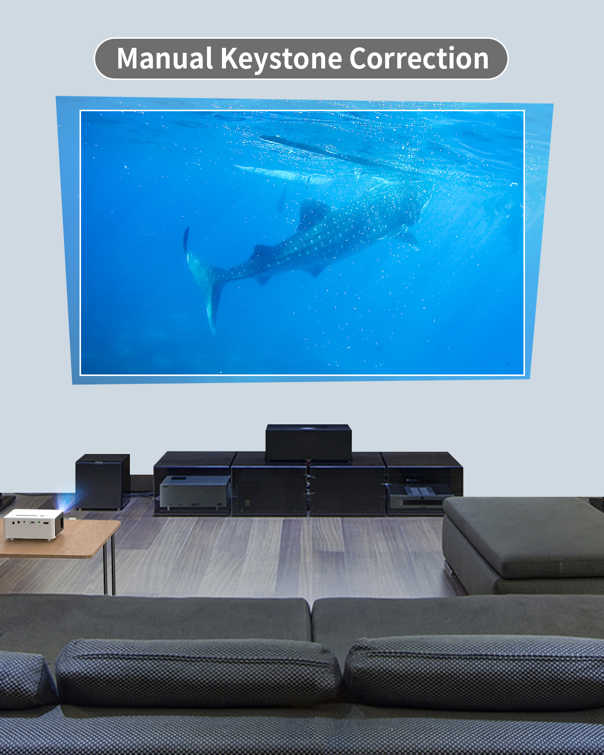 【Easy to Use & Multi Devices Compatible】With HDMI, USB, AV, and audio interface, you can conveniently connect the phone projector to a PC, Laptop, Smartphone, TV Box, Fire Stick, PS4, PS5, XBOX, USB stick, etc. Connection to smartphones requires an HDMI wireless dongle (not included). An included remote control ±15° vertical keystone and 25% zoom functions make operating the projector simple.