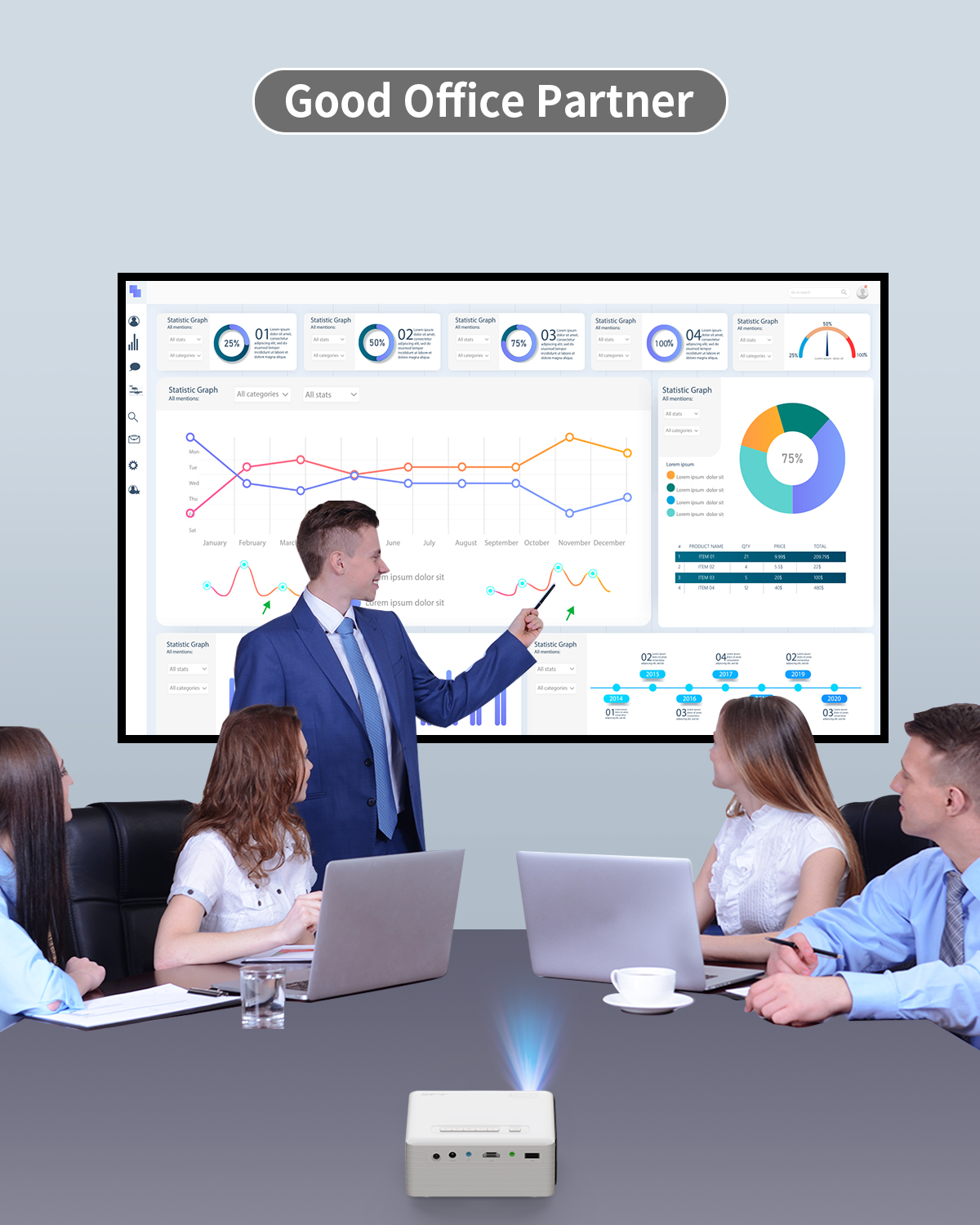 【Super Heat Dissipation & Low Noise】Y3 video projector adopts advanced optical machine and projection technology. Compared with similar projectors, this mini-movie projector dissipates heat faster, reduces power consumption, and is more energy-efficient and environmentally friendly. High-brightness projectors are usually accompanied by a lot of noise. Still, the low-noise technology (<30dB) of the movie projector Y3 makes you no longer affected by noise when watching movies.