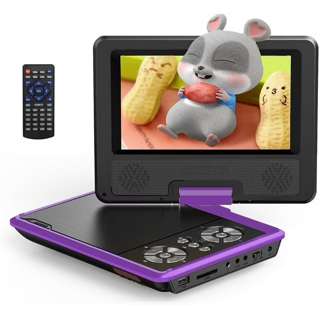 Portable DVD Player with 7.5" HD Swivel Screen for Car and Kids, with Car Charger and AC Adaptor, 1080p, Purple
